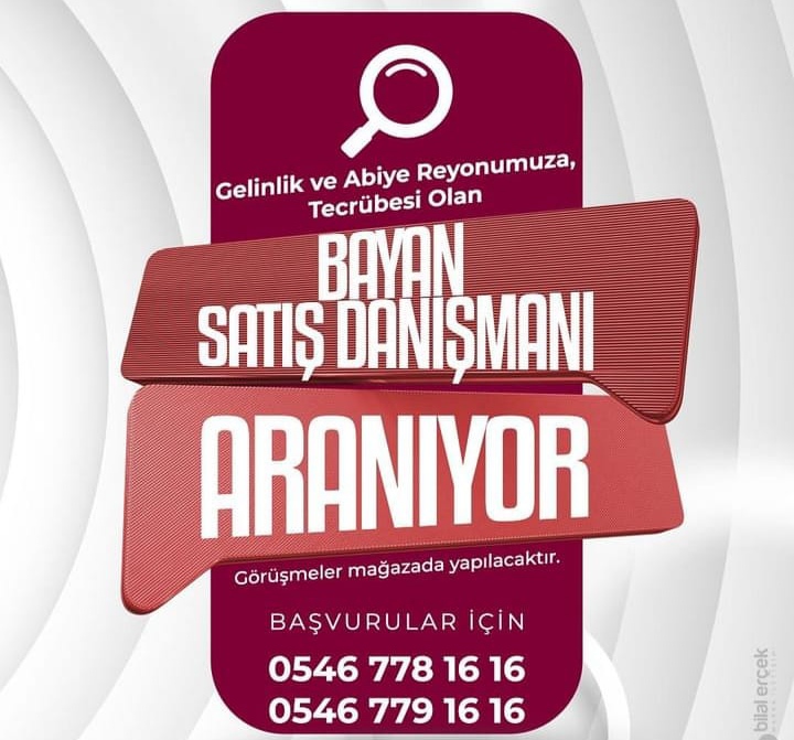 Firma Adı: Gümüşler BursaŞehir: 16 BursaBaşvuru Telefonu: 0546778161605467791616Bayan Satış Danışmanı aranıyor. Görüşmeler mağazada yüzyüze yapılacaktır. Başvuru için numara üzerinden iletişime geçebilirsiniz. iş ilanlarıbursa iş ilanlarıosmangazi iş ilanlarıPazarlama-Satıştezgahtar/kasiyerEleman / Çeşitli